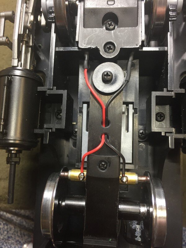 Die Halterung der Stromabnehmer Kohlen wird auf die Vorlaufachse montiert.